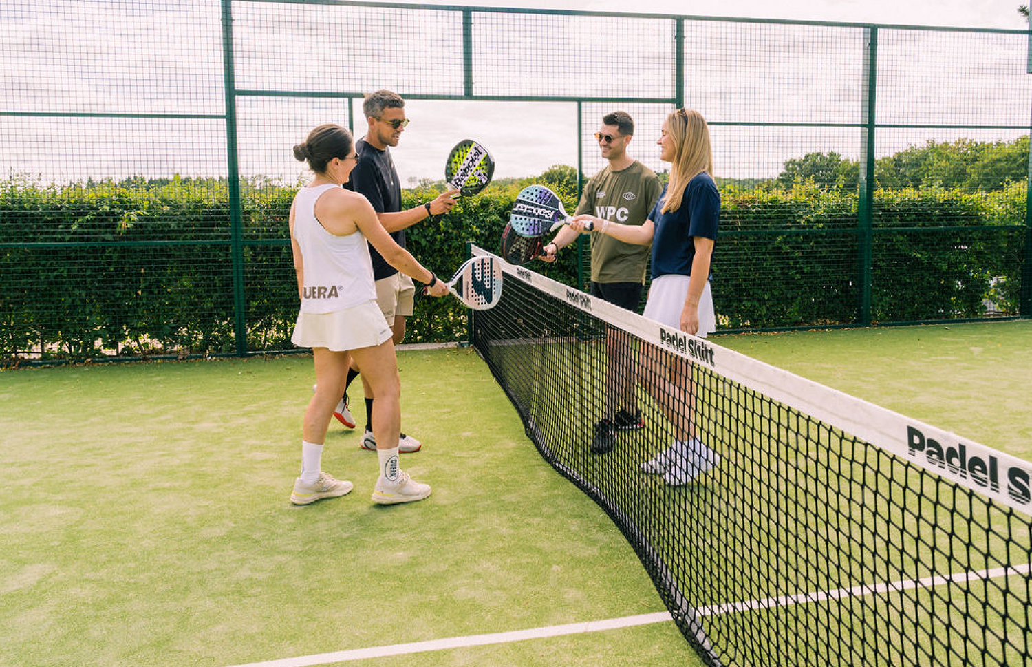 For Padel racket choices, the round-shaped racket suits beginners with a larger sweet spot, where as the tear drop shape suits intermediate players offering a balance of power and control and the diamond-shaped racket is designed for advanced players, prioritising maximum power but can be harder for beginners to control.